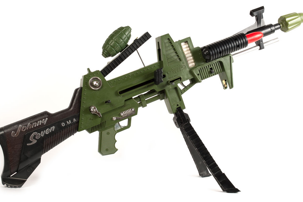 Johnny Seven OMA, short for One Man Army, was one of the most over-the-top toy weapons of the decade. The plastic gun combined several different toy weapons into a single piece of gear. It could fire darts, grenades, and other projectiles, all with different attachments. For kids who loved action-packed pretend battles, it felt incredibly impressive.