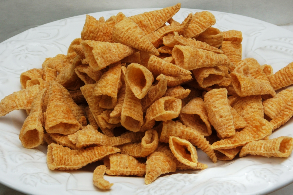 Once the finger game was over, the chips disappeared quickly. The texture was light but still satisfying, and the salty flavor kept you reaching for another handful. Bugles were also easy to pour into a bowl and share with friends. For many kids, they were just as much about the experience as the taste.
