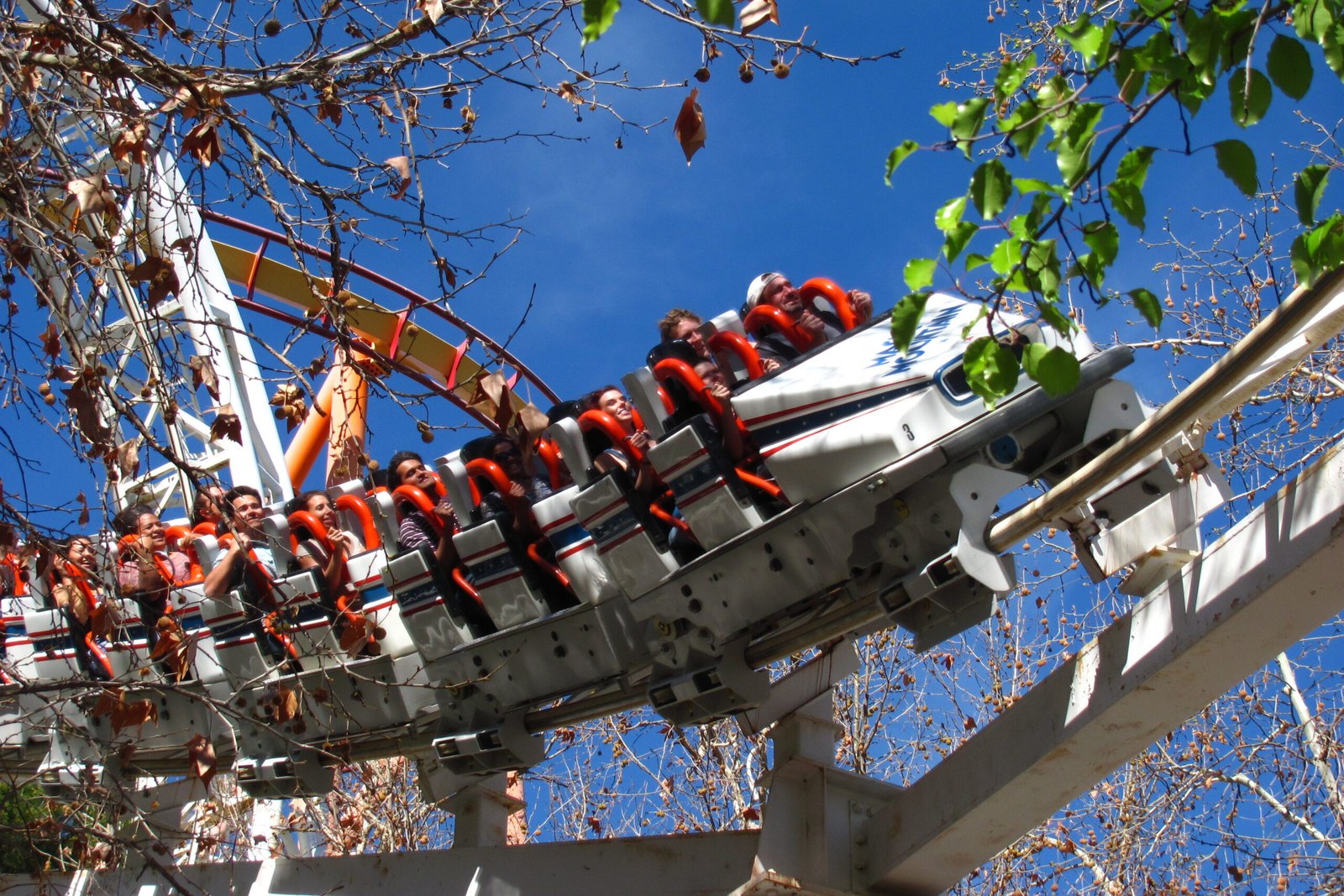 Revolution did something unheard of in the United States at the time, it sent riders upside down in a full vertical loop. That single feature made it legendary almost overnight. People lined up just to say they had gone upside down on a roller coaster. Even watching it from the ground felt nerve-wracking.